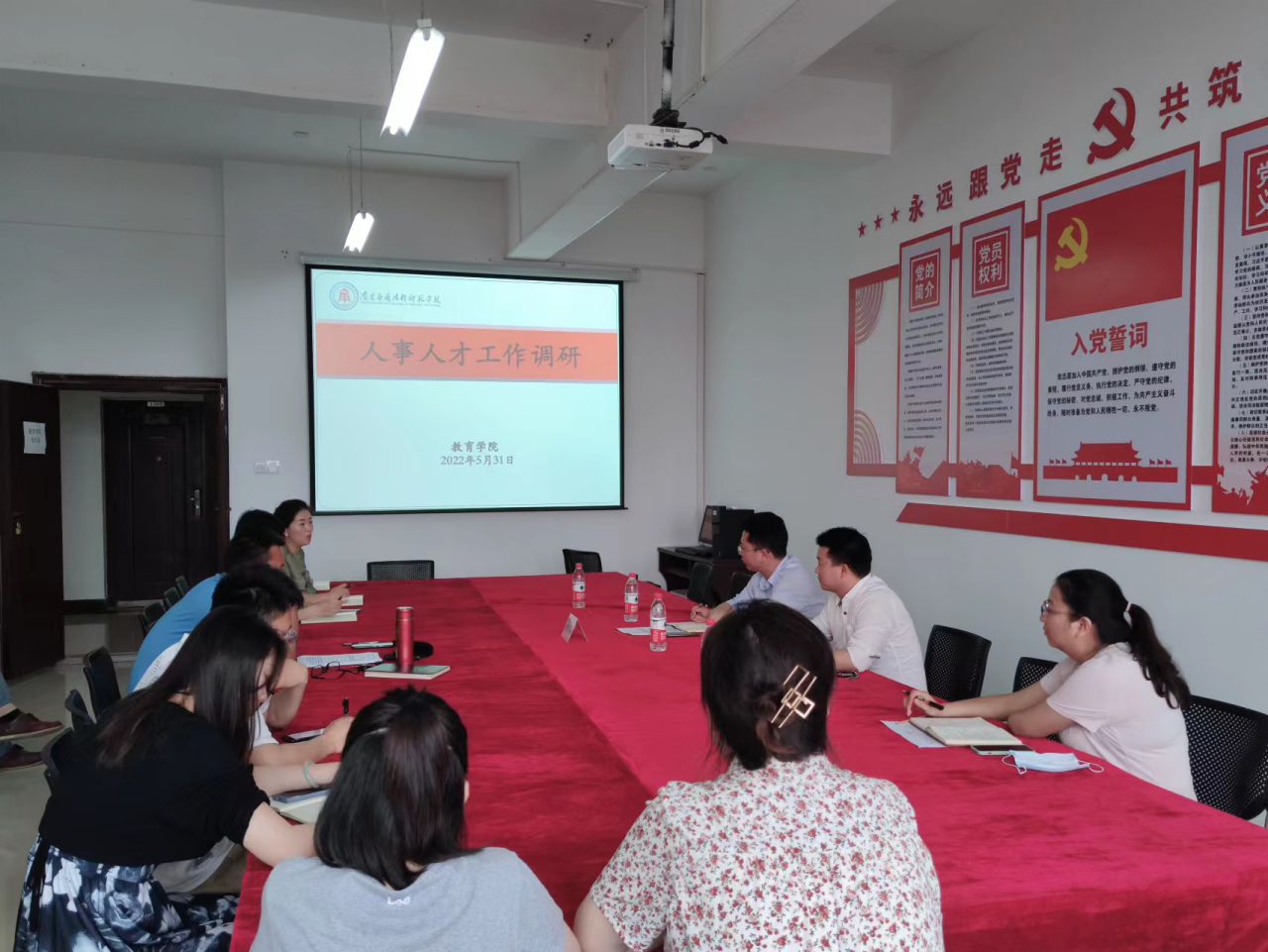 5月31日下午,校长助理郑行忠莅临我院开展人事人才工作专题调研并召开座谈会,校人力资源部有关领导陪同调研。教育学院院长娄全福、副院长张丽芳、各教研室主任、各科室负责人以及马克思主义学院相关人员参加此次调研会议。
