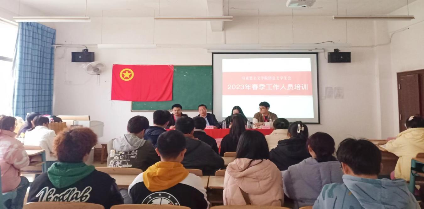 2023年3月22日中午12:00,马克思主义学院团总支学生会在2105教室举行了2023年春季工作人员培训。参与本次会议的有党总支副书记桂光泽、团委指导老师、学生会全体成员。
