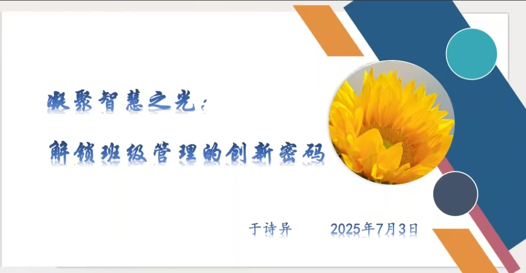 2025年7月4日,马克思主义学院思政系特邀南昌京师实验学校政教处主任于诗异开展线上主题讲座,主题为“凝聚智慧之光,解锁班级管理的创新密码”。讲座由思政系主任戴瑞轩主持,马克思主义学院副院长刘德彰、专任教师余启咏等出席,众多师生在线参与。