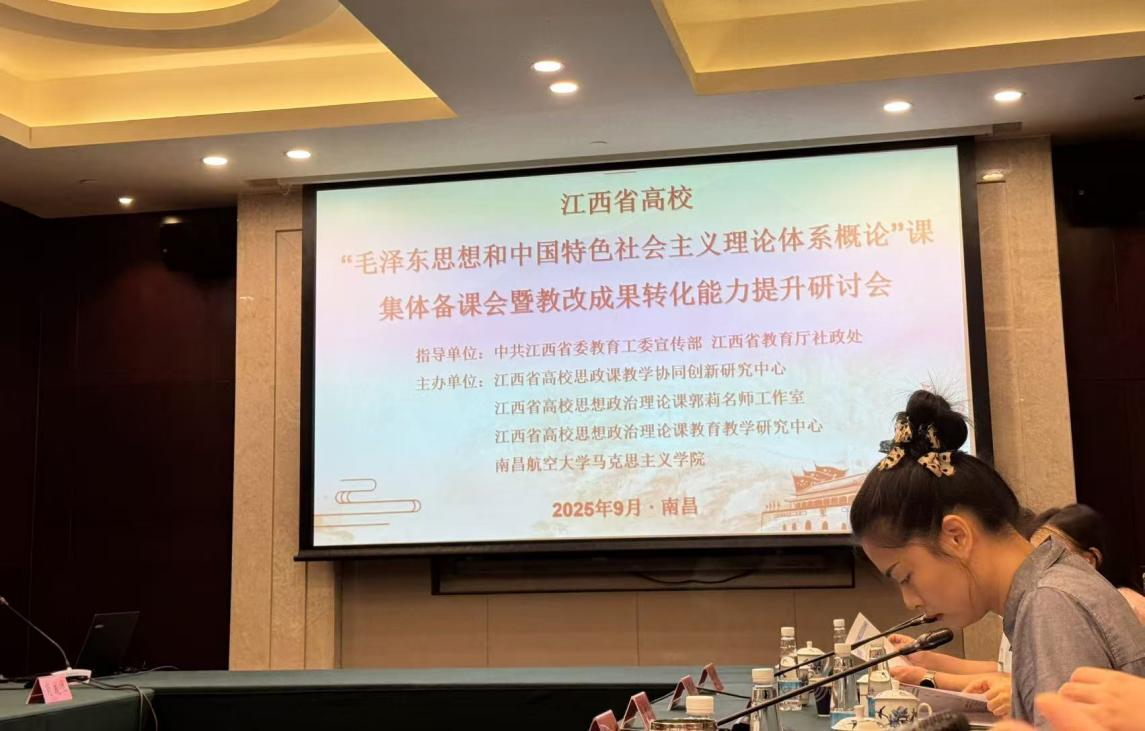 2025年9月7日,江西省高校“毛泽东思想和中国特色社会主义理论体系概论”课集体备课会暨教改成果转化能力提升研讨会在前湖酒店顺利召开,我院思政教师龚文婷参加了此次研讨会。