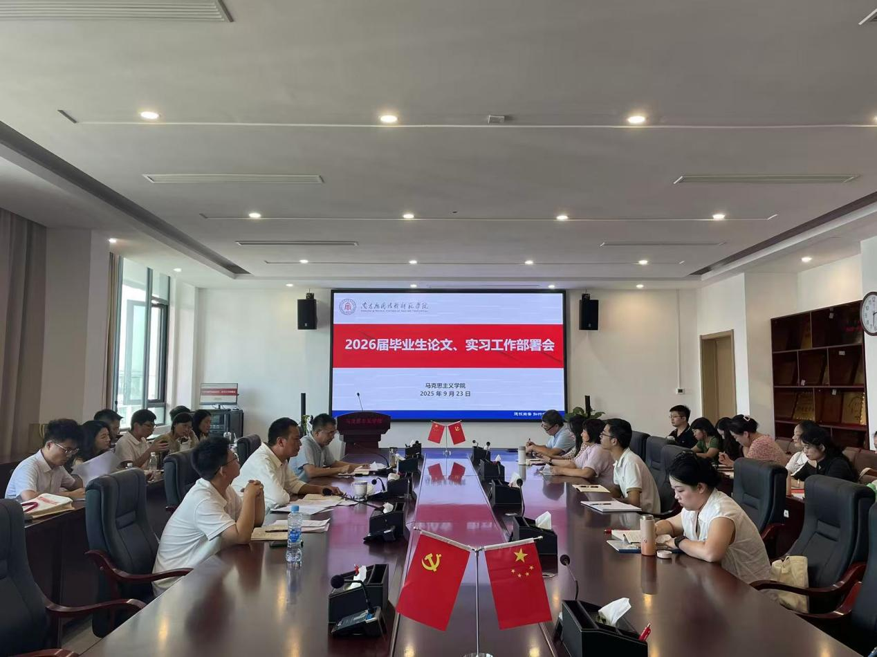 2025年9月23日下午,校长助理兼马克思主义学院院长娄全福深入学院召开2026届毕业生论文、实习工作部署暨全体教职工大会。学院党政班子成员及全体教职工参加会议,会议由副院长刘德彰主持。