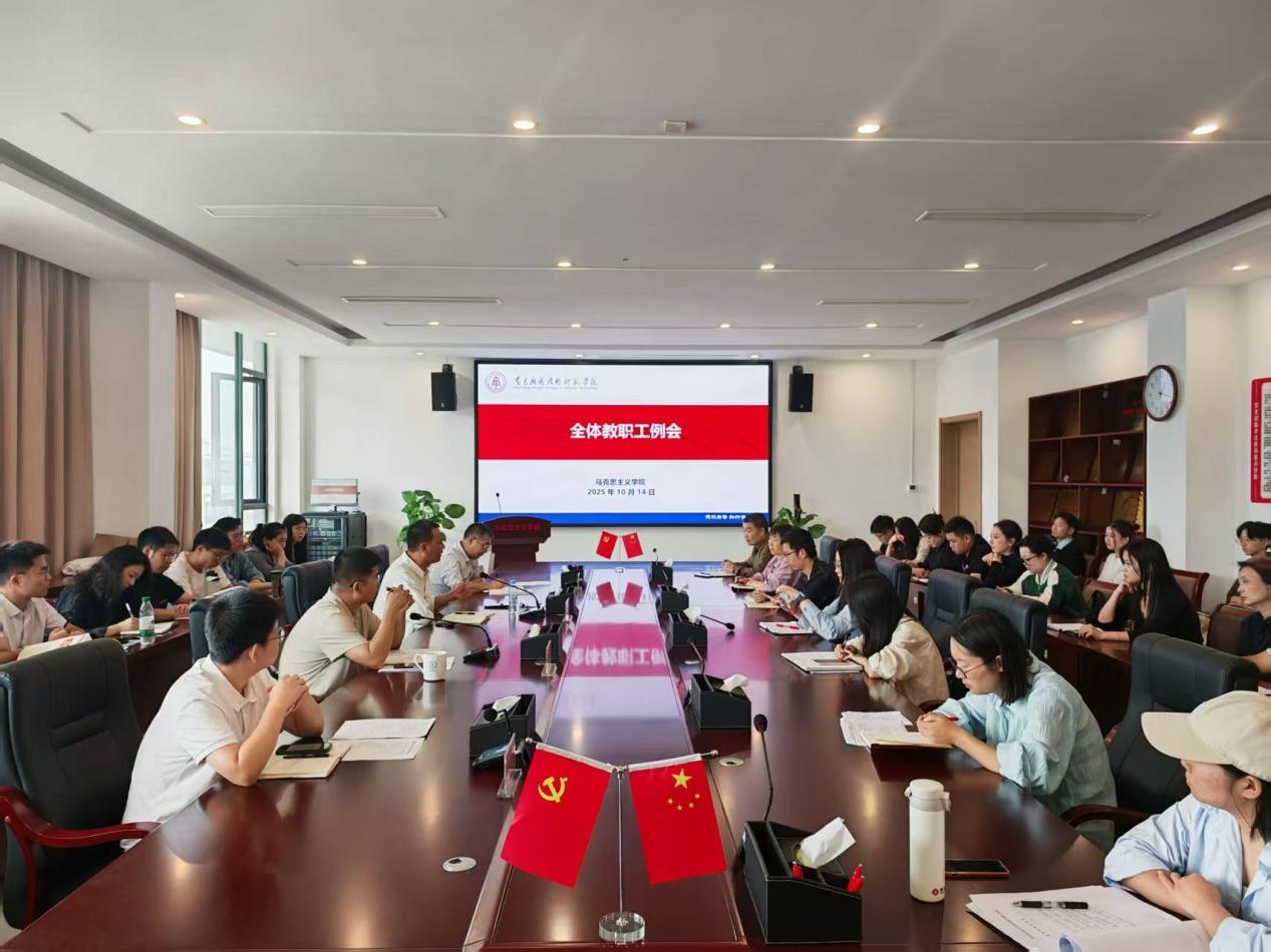 10月14日下午,学院在赣新校区506会议室召开全体教职工例会。校长助理兼马克思主义学院院长娄全福出席会议并讲话,学院党政班子成员及全体教职工参加会议。会议由党总支书记张欣康主持。
