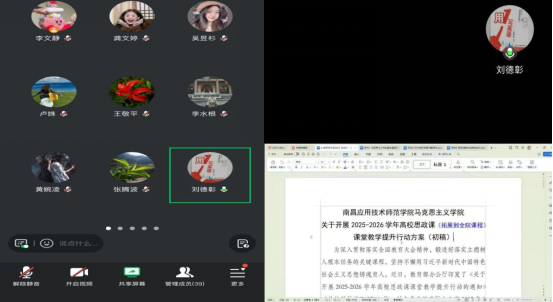 为进一步强化思政课教学质量,推进学院教学规范化建设,马克思主义学院于10月11日通过线上平台召开全体教师教学工作专题会议。学院领导班子、专兼职教师共39人参加会议,副院长刘德彰主持会议并作重点部署。