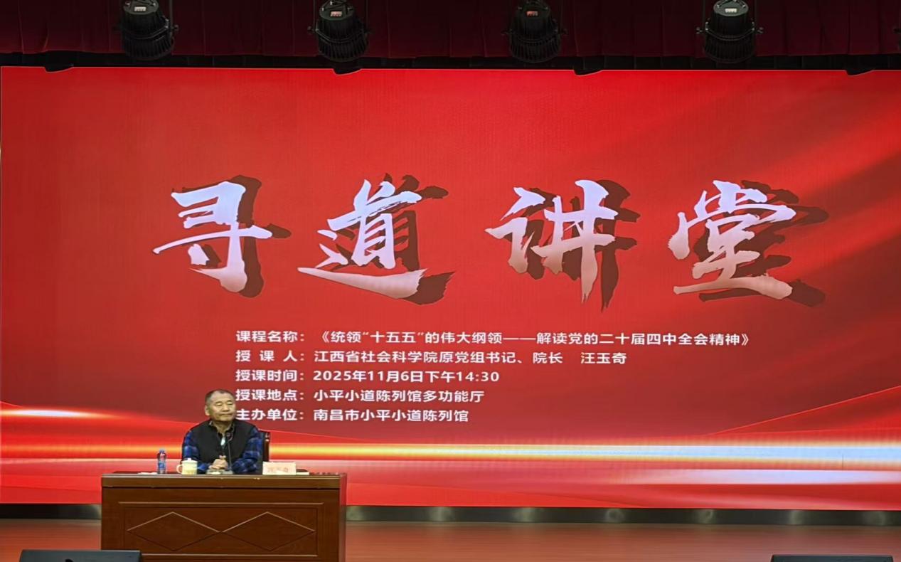 本次讲座特邀江西省社会科学院原党组书记、院长汪玉奇作《统领"十五五"的伟大纲领——解读党的二十届四中全会精神》专题报告。在具有深厚历史底蕴的小平小道陈列馆内,汪玉奇以其深厚的理论功底和独到的学术见解,为全体党员带来了一场思想深刻、内容丰富的学习盛宴。