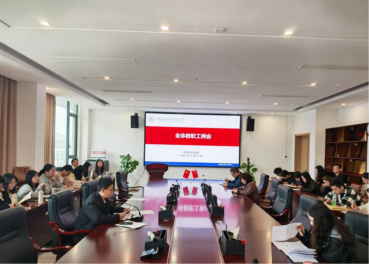 2025年11月11日,副校长兼马克思主义学院院长娄全福深入学院召开全体教职工大会暨“形势与政策”课程集体备课分享会。院长助理杨志明及全体教职工参加会议,会议由杨志明主持。