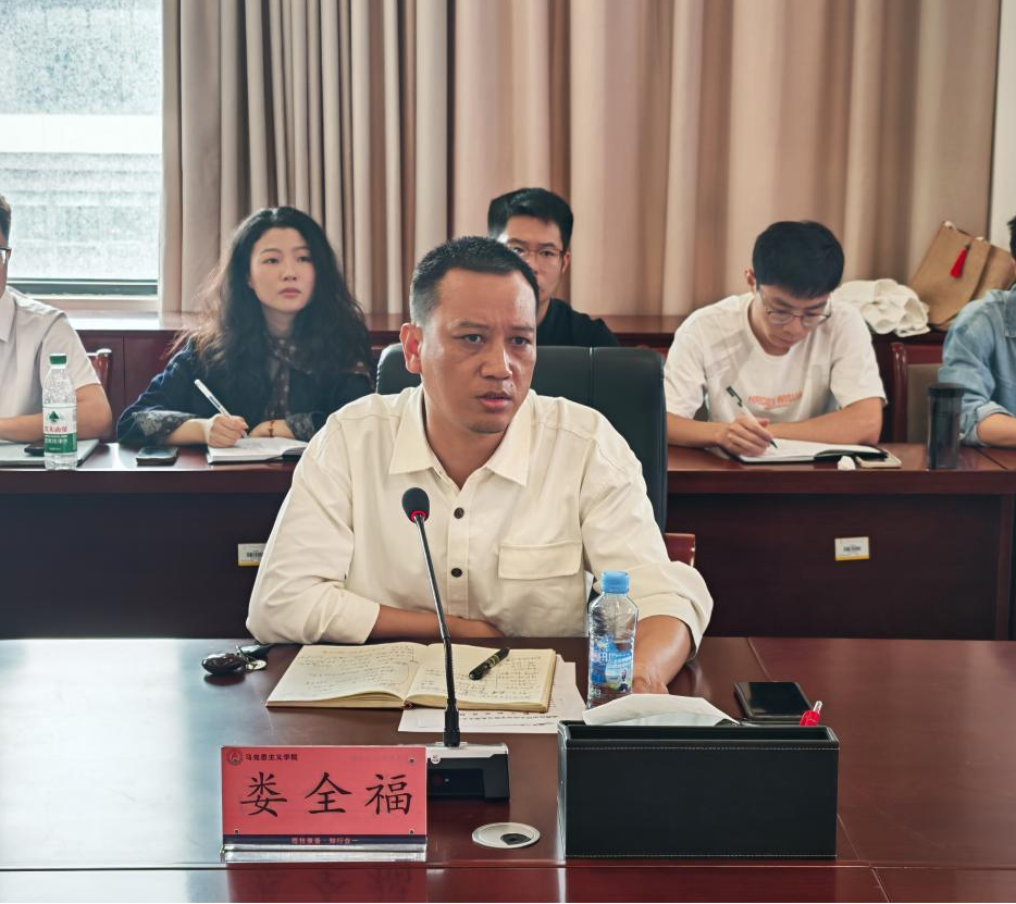 最后,副校长兼院长娄全福作总结讲话。他强调:全体教职工要以高度的责任感投身教育事业,推动学院高质量发展,就学院下一步工作提出具体要求:一是要通过整合资源、加强管理,实现教研室专业化分工。会上通报了对教研室开展的优化调整工作,原有课程组已全面优化调整为教研室;二是要提前谋划青年教师教学大赛(青教赛)的准备工作。由思想政治教育系牵头组织团队,提前启动2026年青教赛的筹备工作,制定详尽方案,加强师资培训;三是要全体教职工积极推进课题申报工作。鼓励教师聚焦教研与科研领域,主动申报各级各类科研项目。