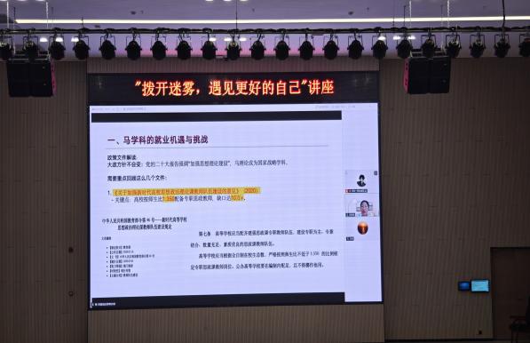 近日,为推动学生高质量就业,学院邀请南开大学马克思主义学院博士生梁春艳为全体思政系学生带来"拨开迷雾,预见更好的自己—马院学子的成长与发展之路"专题讲座。