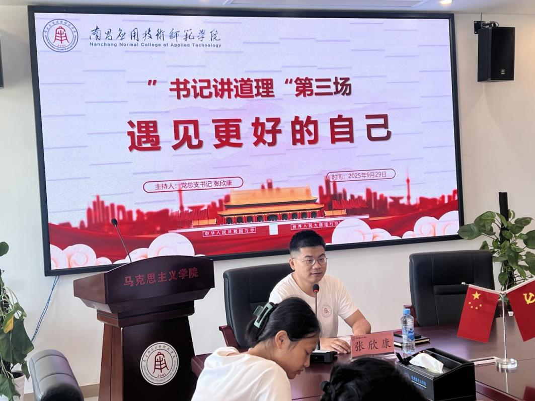 “也许路有点长、有点曲折,但是只要坚定的走下去,阳光总会照到我身上。今后,我将直面恐惧与迷茫,勇敢去做更好的自己。”9月30日午,南昌应用技术师范学院马克思主义学院党总支书记张欣康主讲的“书记讲道理”上,曾丽同学的发言道出了班级同学们的心声。