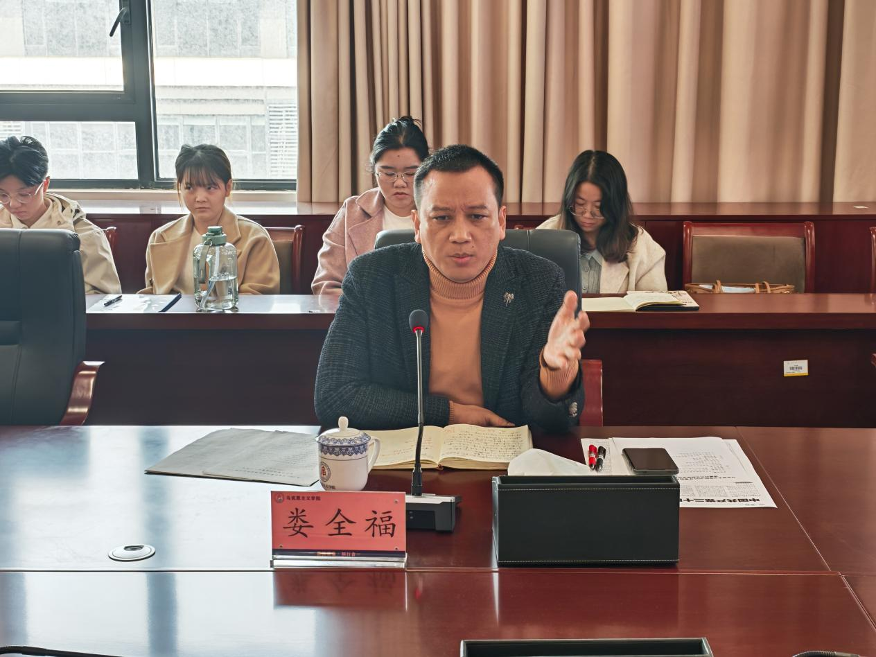 会议伊始,娄全福对近期成功晋升职称的两位教师表示祝贺。他指出,这既是教师个人长期努力的结果,也体现了学院师资培养体系的支撑作用。随后,他分析了当前思政课教学现状,强调课程基础仍需夯实,部分青年教师教学能力有待提升。