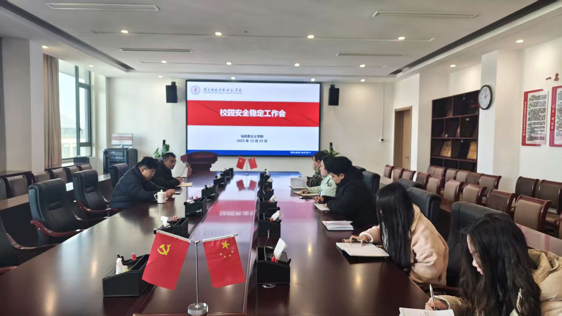 为深入贯彻落实学校安全稳定工作部署会议精神,切实筑牢学院安全防线,保障师生生命财产安全及正常教育教学秩序,马克思主义学院于学院会议室召开安全稳定工作专题会议。学院党总支书记张欣康、副院长刘德彰,各科室成员及全体辅导员参加会议。