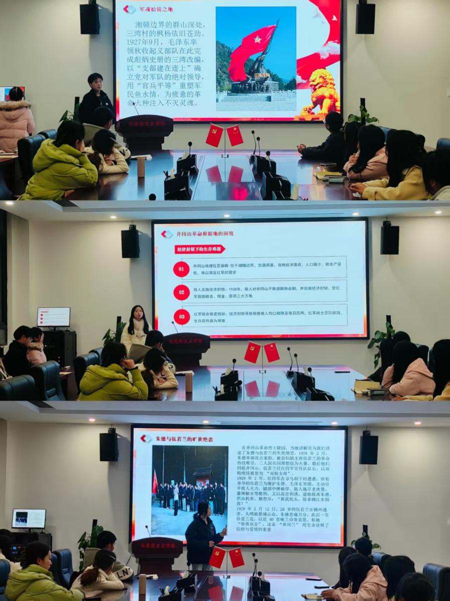 为深入传承红色基因、凝聚青年奋进力量,引导马克思主义学子在知行合一中筑牢信仰根基,2025年12月16日,马克思主义学院“星火”读书会在沁苑七实506活动室顺利举办井冈山研学分享会。活动以“红色走读”为载体,通过回溯研学历程、分享实地感悟,推动井冈山精神在青年群体内化于心、外化于行。