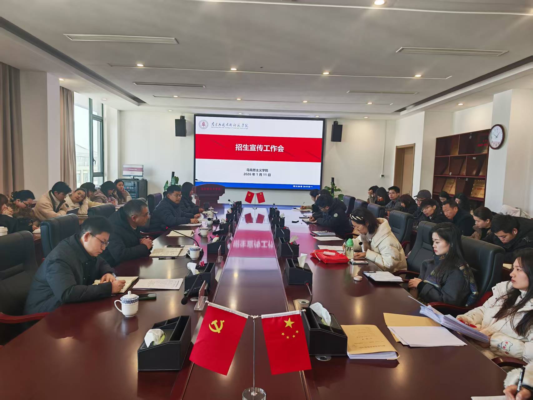 1月11日上午,马克思主义学院2026年度招生宣传工作启动会议在沁苑七实506会议室顺利召开。学院党政班子成员及全体教职工齐聚一堂,聚焦招生工作重点任务,谋划部署系列创新举措,为新一年度招生工作起好步、开好局奠定坚实基础。会议由学院副院长刘德彰主持。