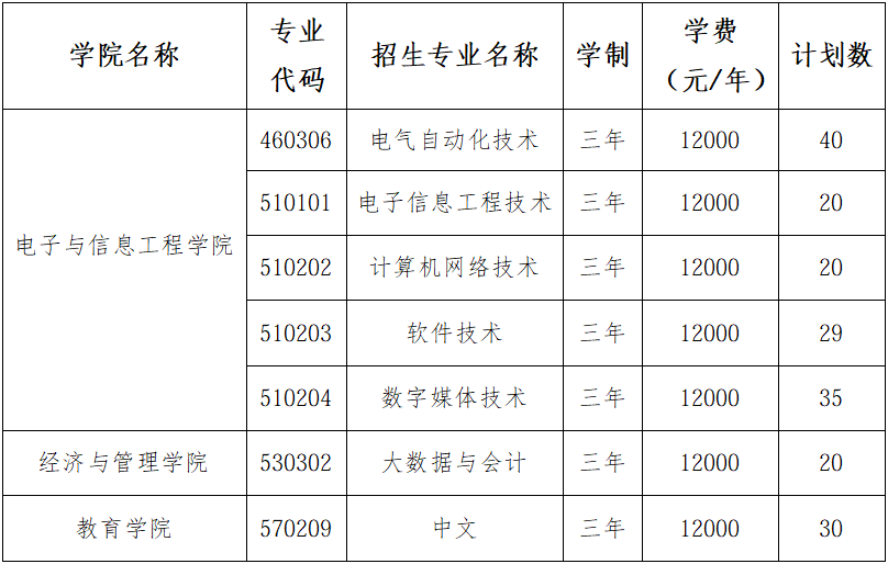 二、招生专业、学费及计划数