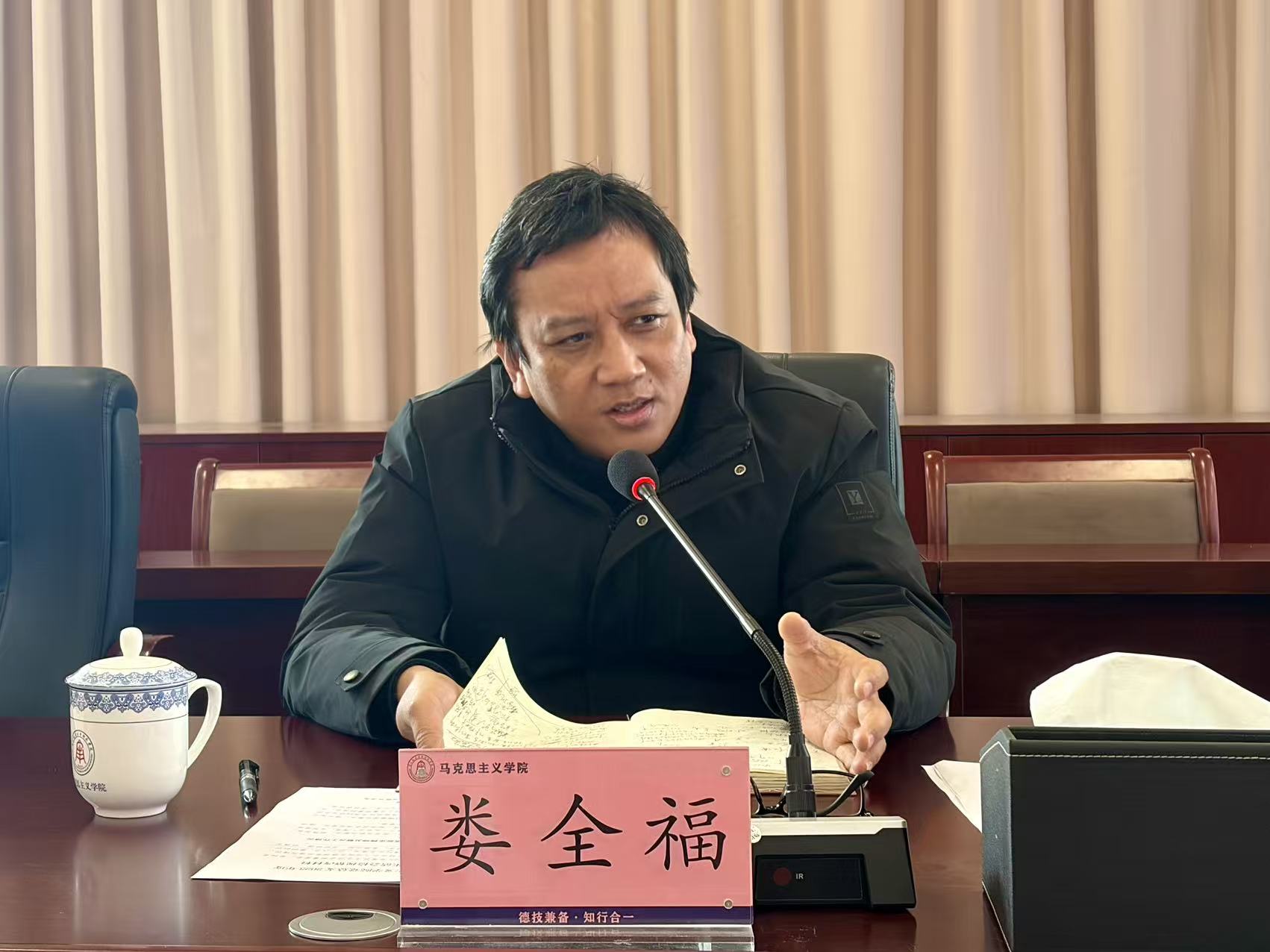 娄全福在点评讲话中指出,马克思主义学院党总支民主生活会会前准备充分、剖析问题客观深入,开展批评严肃认真,是一次动真碰硬的党性锻炼,体现了求真务实的工作作风。在肯定成效的同时,也指出了存在的短板弱项,并对下一步整改落实提出明确要求:一是提高政治站位、持续强化理论武装。要始终把学习贯彻习近平新时代中国特色社会主义思想作为首要政治任务,深刻领悟“两个确立”的决定性意义,增强“四个意识”、坚定“四个自信”、做到“两个维护”,不断提高政治能力,确保党中央决策部署和学校党委工作要求在本单位不折不扣落到实处。二是聚焦查摆问题,抓好整改落实。班子要针对查摆出的问题和相互批评的意见,认真梳理,建立整改台账,明确整改目标、责任主体和整改时限。三是勇于担当作为,推动事业发展。班子成员需聚焦立德树人根本任务,围绕学校中心工作和本单位重点任务,团结带领全体师生,着力破解制约本单位发展的重点难点问题,拿出新举措、取得新突破,切实以高质量党建引领高质量发展。四是落实主体责任,全面从严治党。要坚决扛起管党治党主体责任,党组织书记要履行好第一责任人职责,班子成员要履行好“一岗双责”。要持之以恒正风肃纪,严格遵守党的政治纪律和政治规矩,严格执行中央八项规定及其实施细则精神,营造风清气正的政治生态。