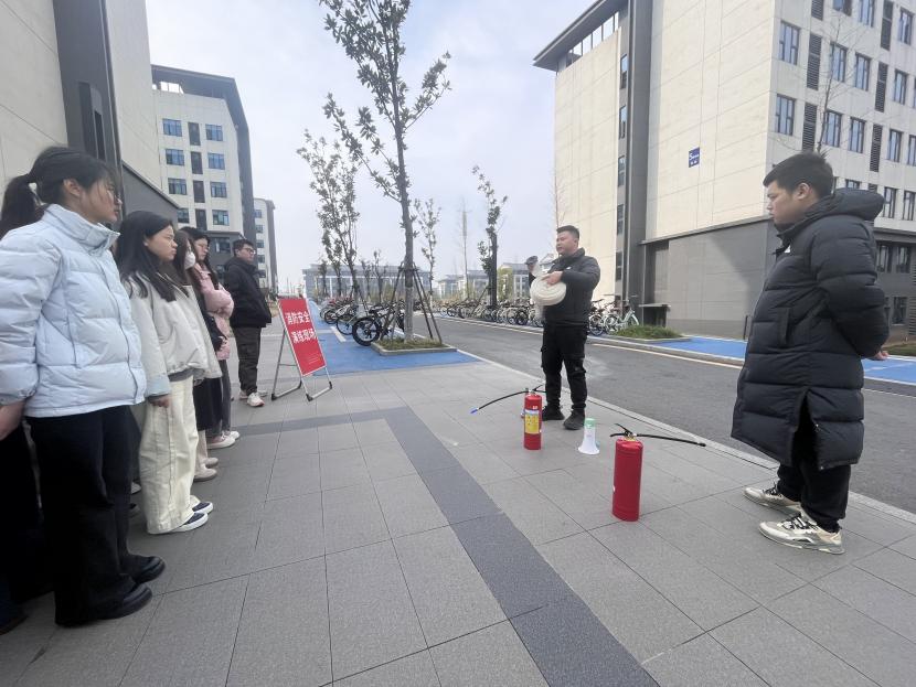 到达指定地点后,各班立即清点人数并逐级上报。随后,现场工作人员讲解灭火器、消防栓等器材使用方法,演示 “提、拔、握、压” 灭火操作流程,师生代表轮番上手实操,切实掌握初期火灾扑救技能。