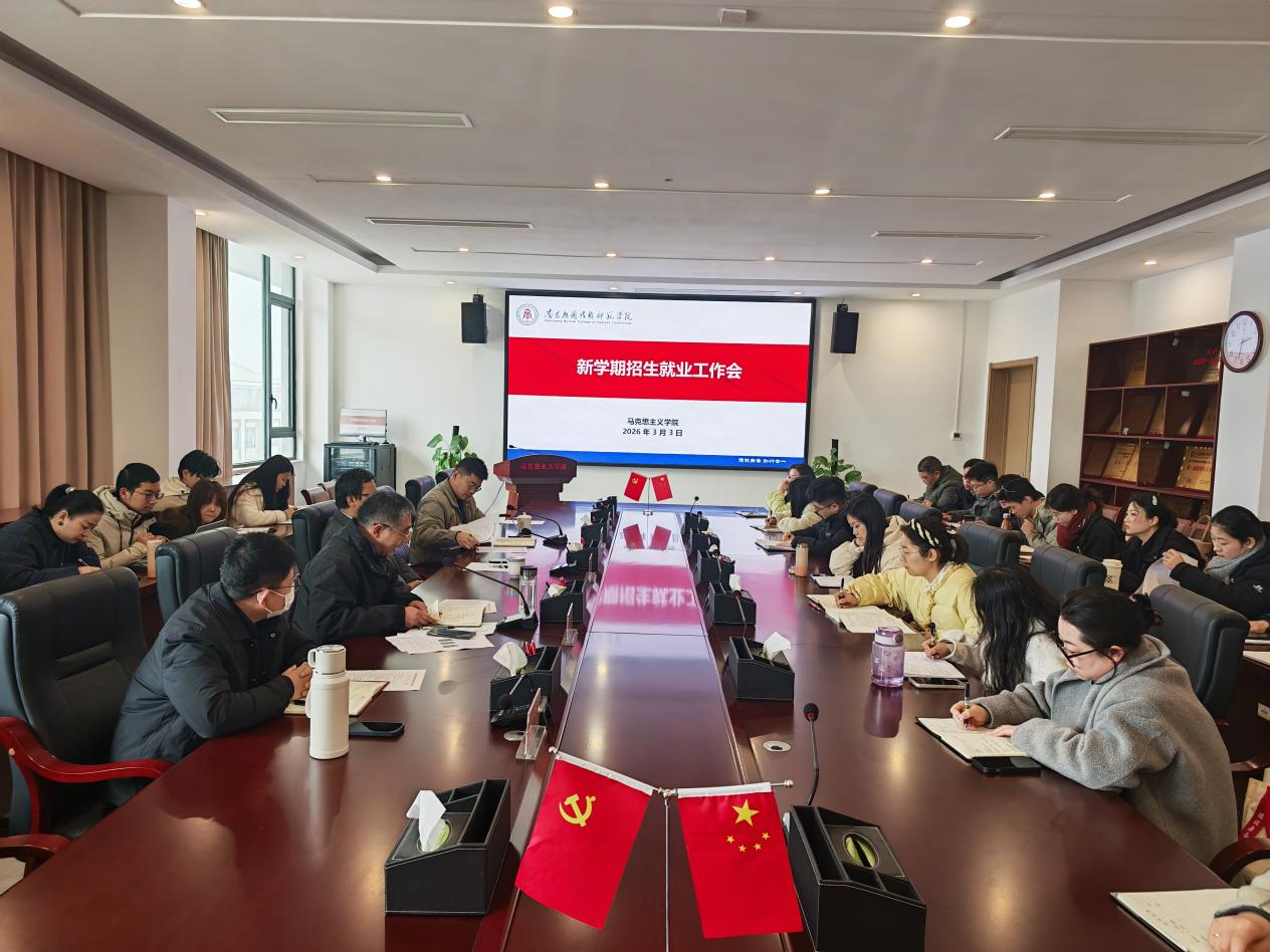 3月3日下午,马克思主义学院2026年度招生宣传工作启动会在沁苑七实506会议室召开。学院党政领导班子及全体教职工参加会议,围绕招生工作的重点任务展开深入研讨,系统谋划创新举措,为本年度招生工作开好局、起好步打下坚实基础。会议由副院长刘德彰主持。
