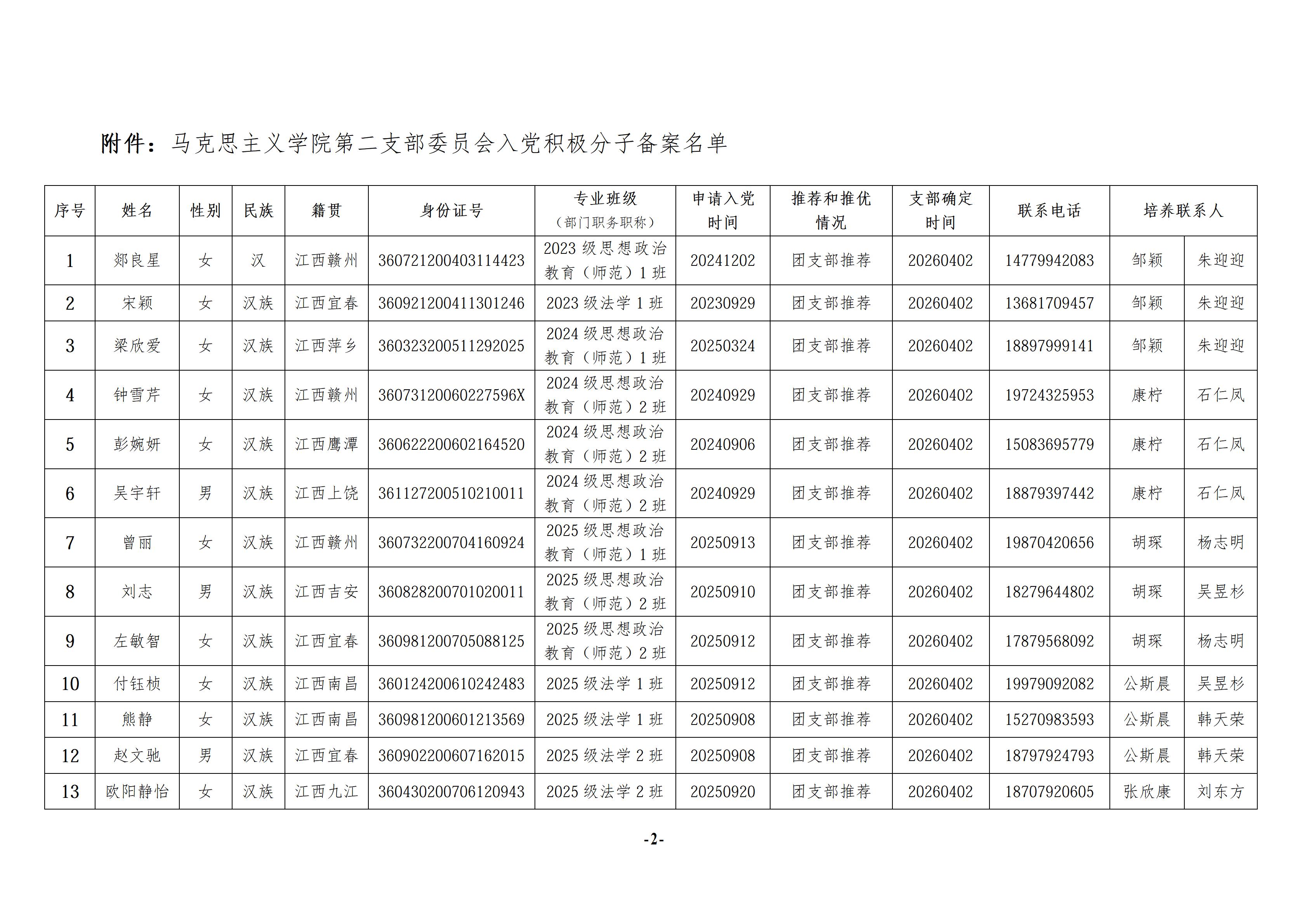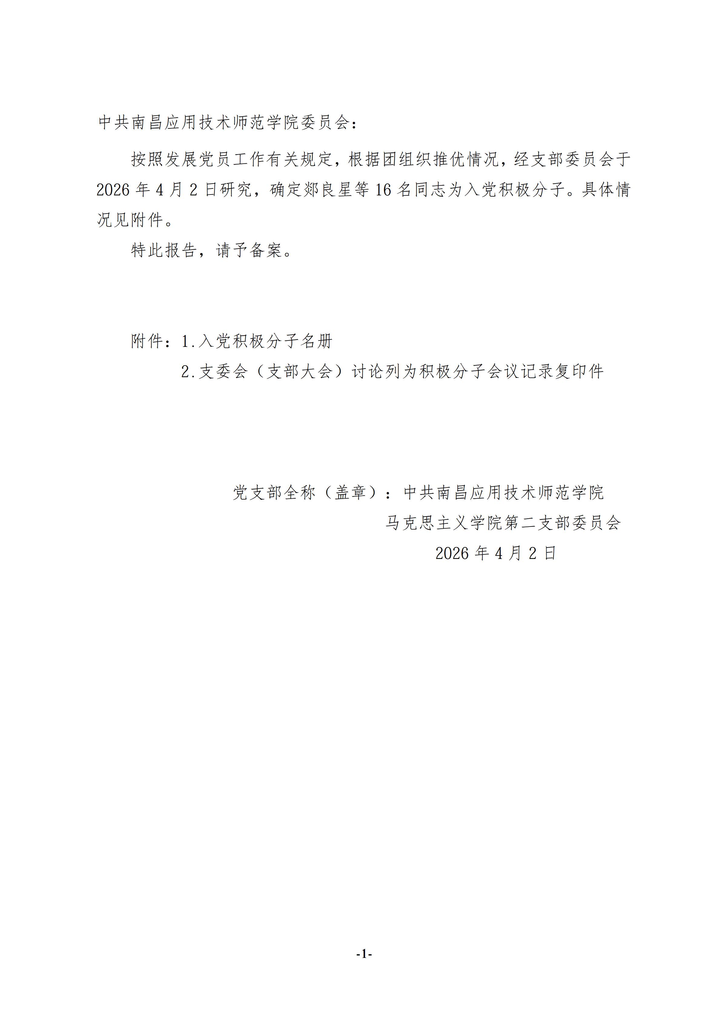 党建活动 组织发展 党总支概况 党建工作 您现在的位置是:首页 > 党建活动 > 党建工作 关于将郯良星等16名同志进行入党积极分子备案的报告 管理员2026-04-0317 下一篇 关于拟将欧阳敏同志转为正式党员的公示
