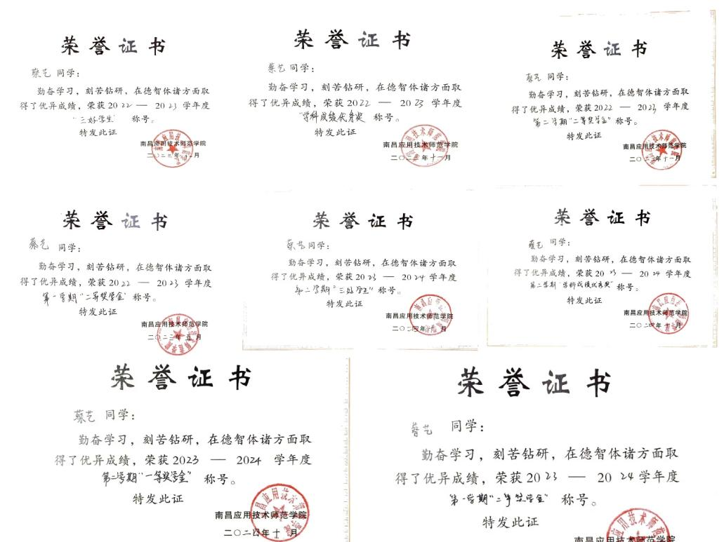 大学,是钻研学习的舞台。我始终保持积极进取的态度,对知识充满渴望,多次获评校级三好学生、学科成绩优秀奖,荣获校级一、二等奖学金及国家奖学金。我积极参加学科竞赛,主动考取英语六级、计算机二级、普通话证书,并顺利通过高中思想政治教师资格证考试。这些都为我的未来发展打下了坚实的基础。